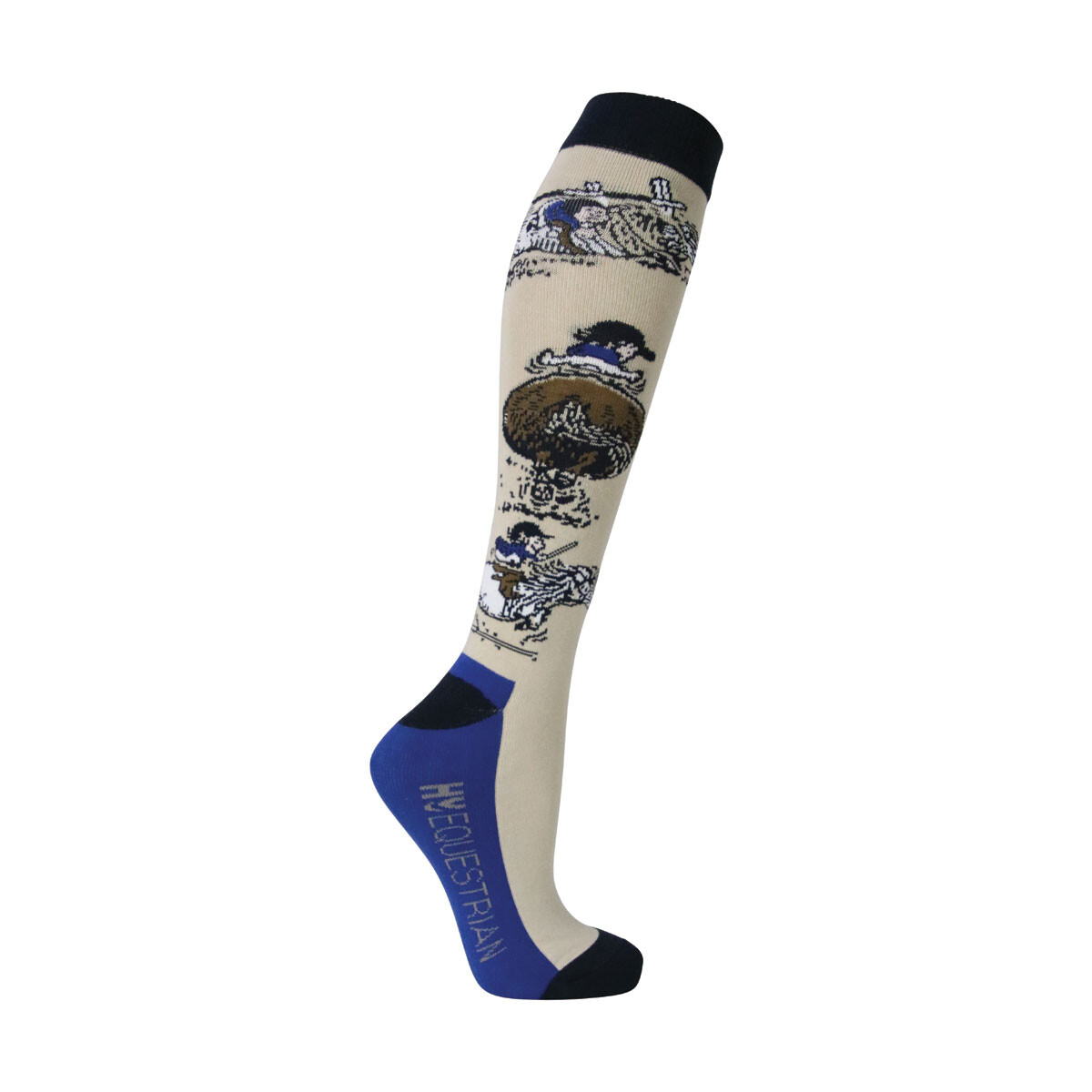 These Hy Equestrian Thelwell Collection Jumps Socks are a must have addition to your wardrobe! The first sock features an argyle pattern and the Thelwell logo at the top, the second design features the Thelwell characters and the third sock features a repeated Thelwell logo. All pairs feature contrasting cuffs, heel and toe. With antibacterial properties from the added bamboo and padded sole, these socks ensure comfort and freshness all day long.