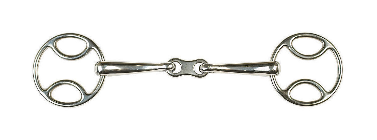 Very popular bit for ponies that need some extra brakes. Similar action to the continental but less so, and without the bulky cheek pieces. French link softens the action- good for ponies that tend to throw their heads up in a jointed bit.