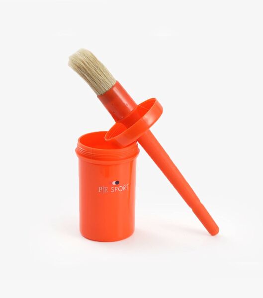 Screw top lid secures the brush within the contents of the pot. Handy for shows or can be used daily at home, just add your favourite hoof ointment/oil.