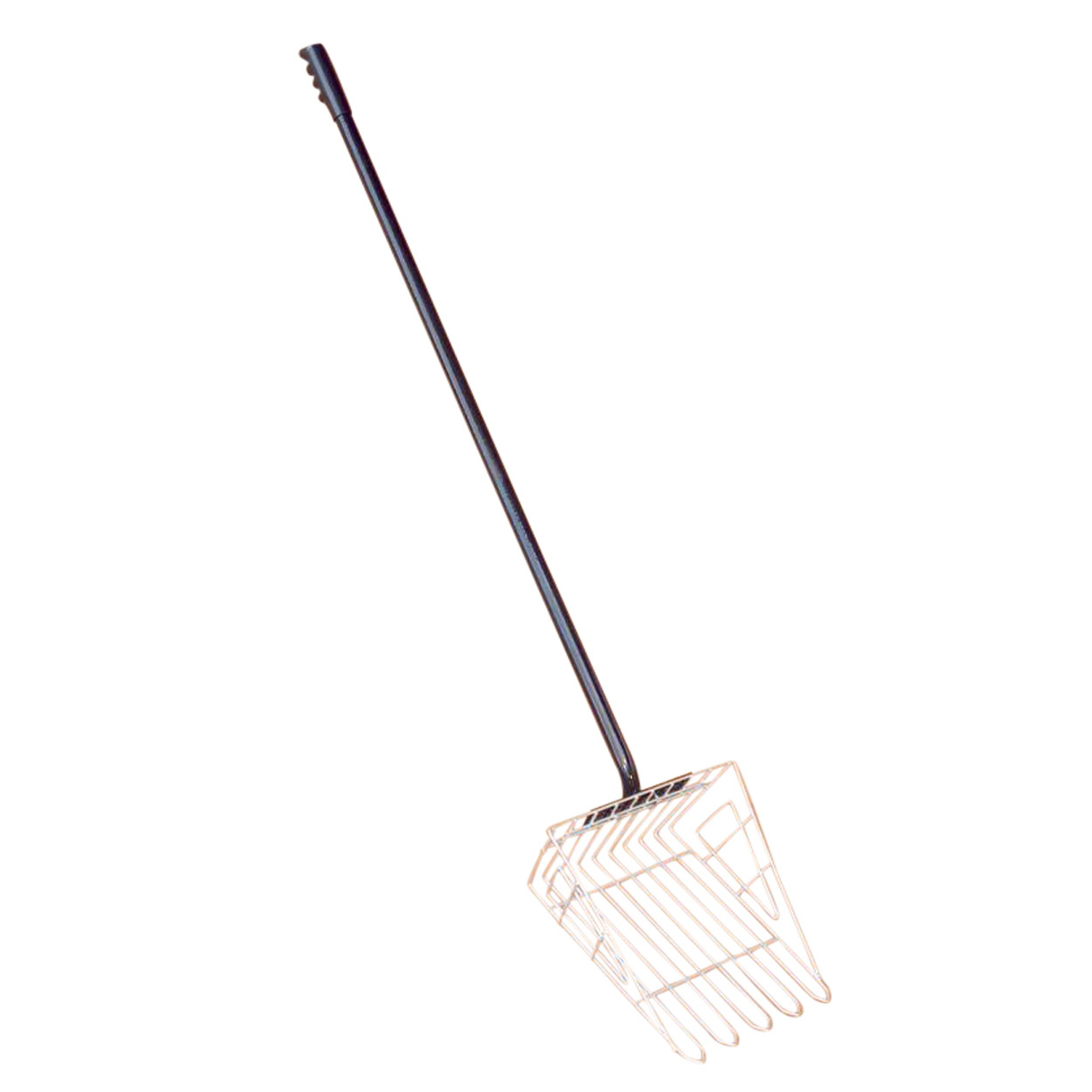 "Give us your usual strength but larger, and suited to rubber matting too" asked a big customer. High sides give great capacity with none of the frustrating "roll off" experienced with most other forks. Lightweight yet strong steel construction, head hot dip galvanized and straight handle warm feel black Stubbyfine coated. Handle supplied loose (10mm spanner required). Height: 156cm, width: 36cm, depth: 15cm.